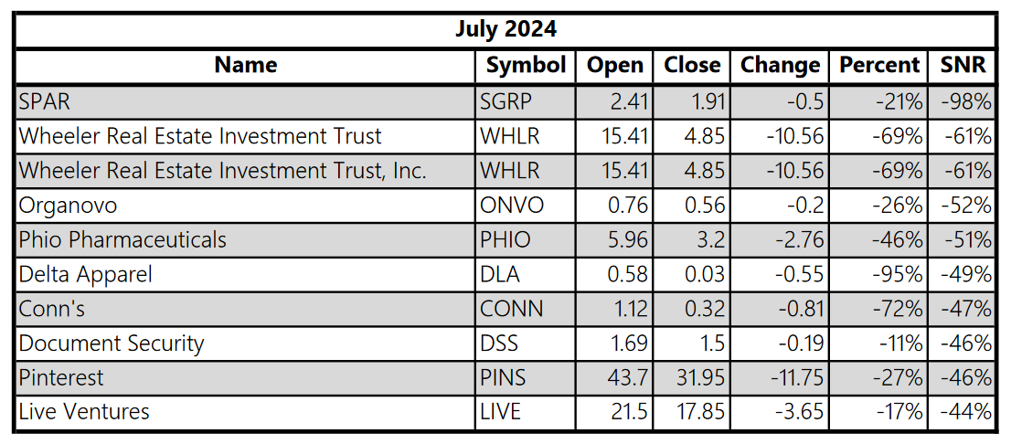 For the definitive moves to the downside, Pinterest (PINS) is a recognizable name, but the others not so much.