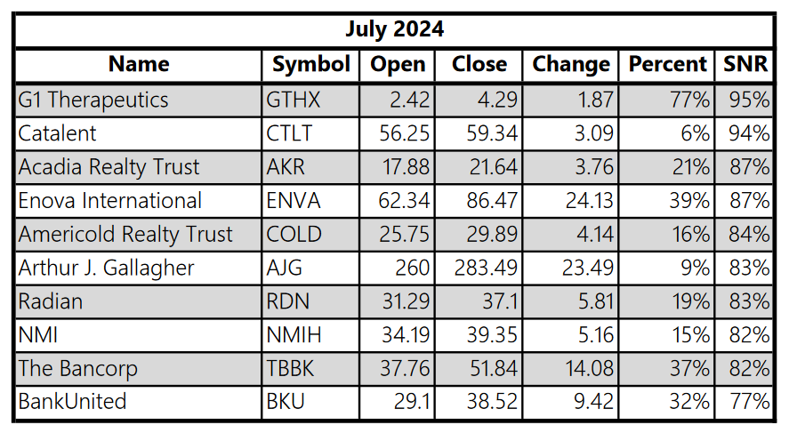 These are the smoothest rides. Not always the most explosive, but the smoothest. Funny enough, Catalent (CTLT) shows up on this list and is a stock that I was looking at back in May 2023. Looks like I could have made a pretty penny into September 2023, but alas I did not keep tabs on this one.