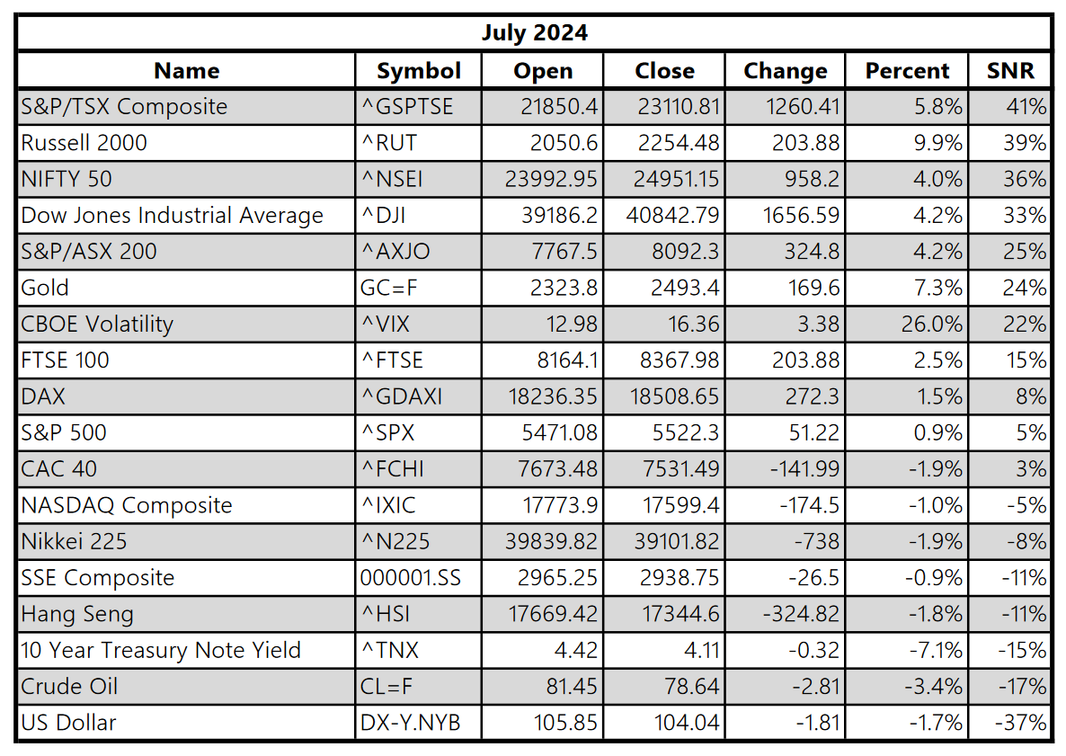 The most definitive moves to the upside were seen in the TSX (Canadian equities), the Russell 2000, and the NIFTY 50 (Indian equities). Out of these, the Russell saw the best nominal performance, a +9.9% move to the upside.