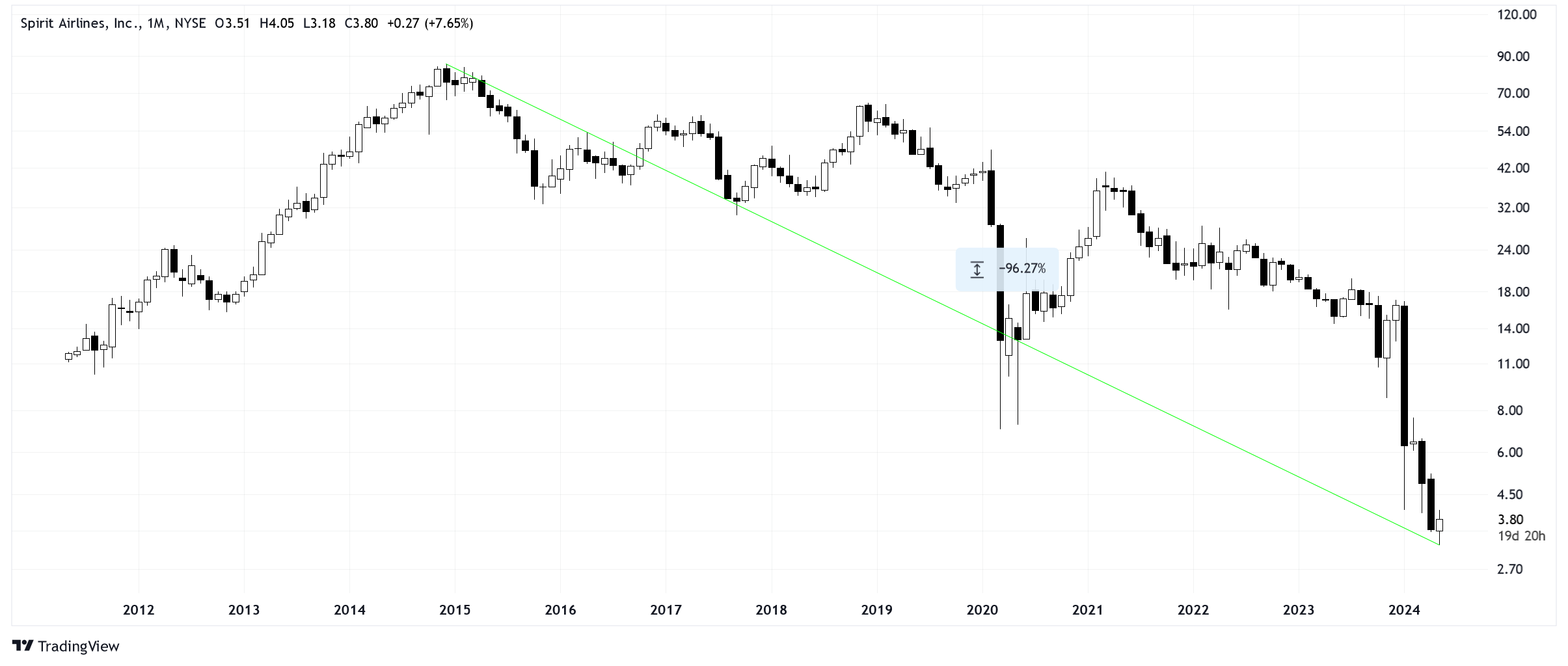 If we take the 40,000 foot view of Spirit Airlines (SAVE), the picture ain’t pretty.