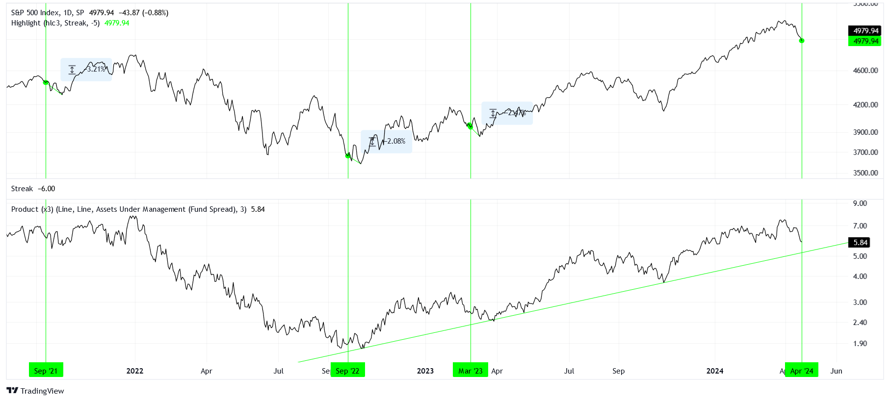 In a previous article of mine, “Long Until Wrong,” we learned about a complex sentiment indicator that incorporates options volatility indices, futures and options positioning data, and the spread between bullish and bearish assets under management (AUM) for a couple of popular leveraged ETFs. Let’s take a look at that indicator once more within the context of the current correction.